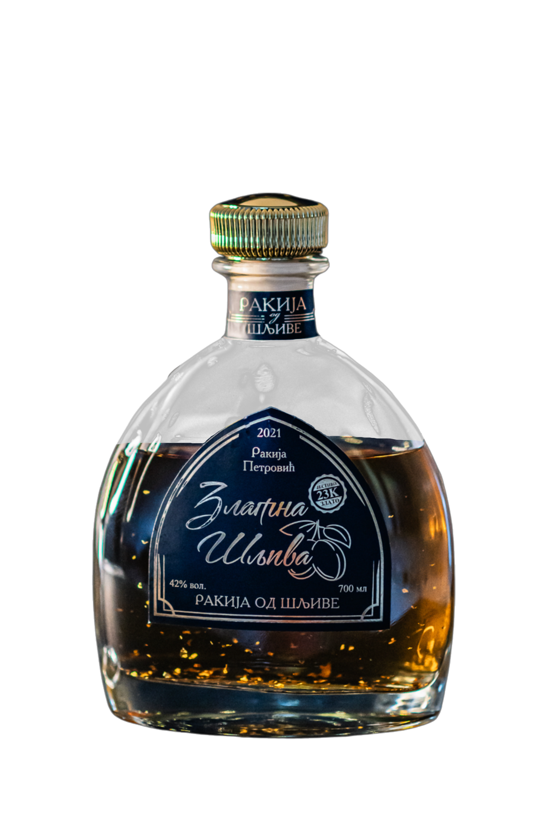 Rakija sa zlatom LUX je ekskluzivni alkoholni napitak koji donosi savršen spoj tradicije, luksuza i sofisticiranosti. Ova rakija je proizvedena od najkvalitetnijih plodova, pažljivo odabranih i destilovanih kako bi stvorile piće koje pruža vrhunski doživljaj. Dodavanje komadića jestivog zlata u rakiju čini je jedinstvenom i ekskluzivnom, donoseći dašak luksuza i prestiža.